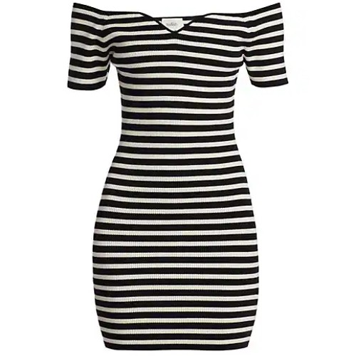 Oleane Striped Off-The-Shoulder Minidress for $154.87 on Saks Fifth Avenue.View Deal